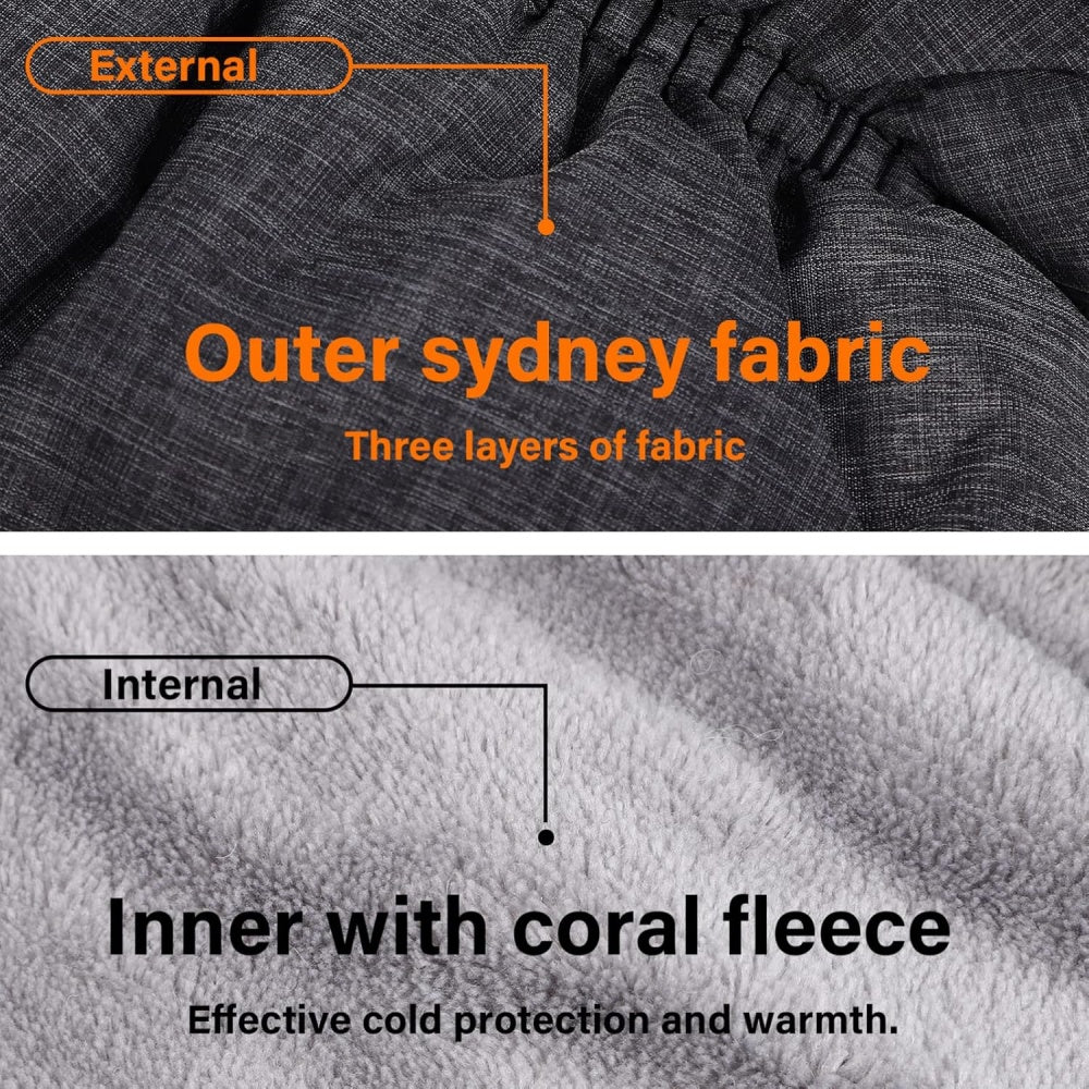 Three layers of fabric: Outer sydney fabric, middle cotton, inner with coral fleece, protects against cold and keeps you warm.
