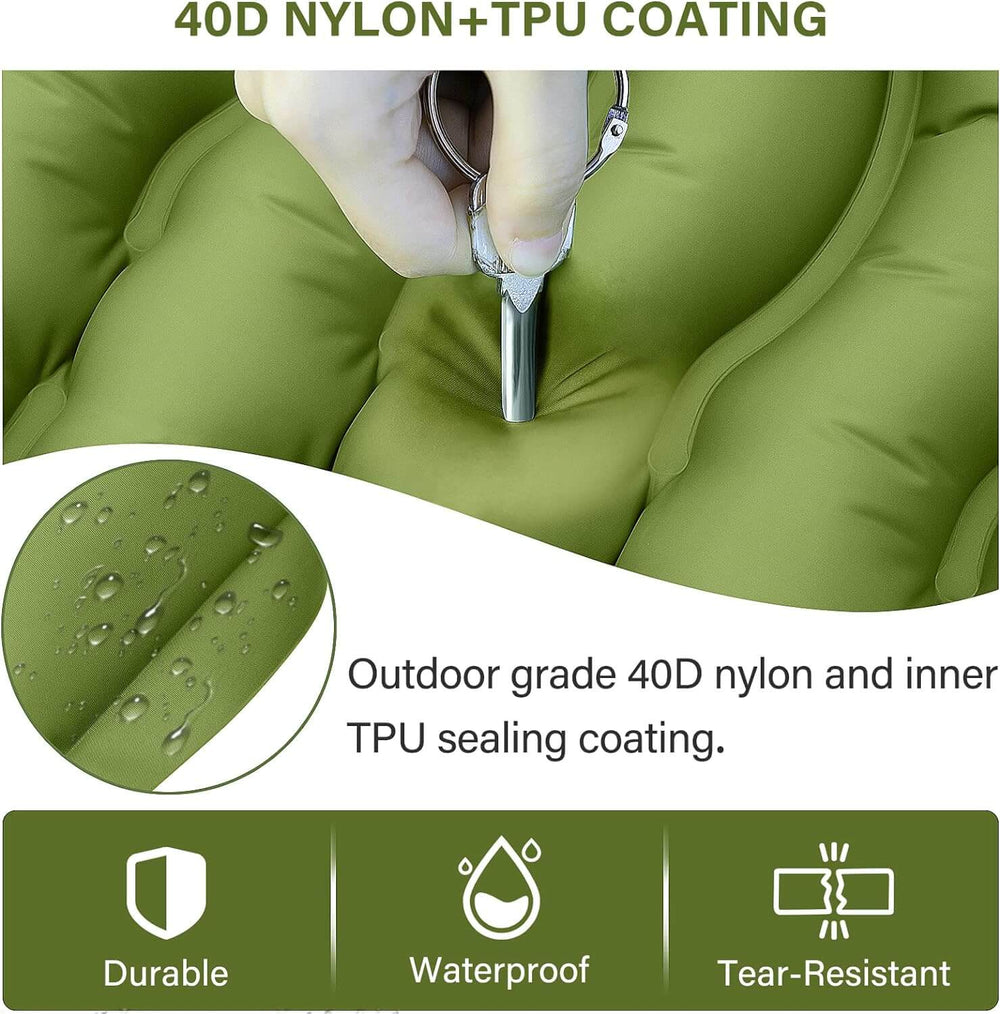 - Built for a lifetime of adventures, the sleeping pad made of extra thick 40d nylon provides a unique balance between low weight & durability, also our best companion for long camping travel. Camping pad is thermoform sealing and TPU coating make the camping mat performance better in severe conditions. You can say goodbye to sore backs and other discomforts normally left by bumps and rocks underneath the floor of your tent!