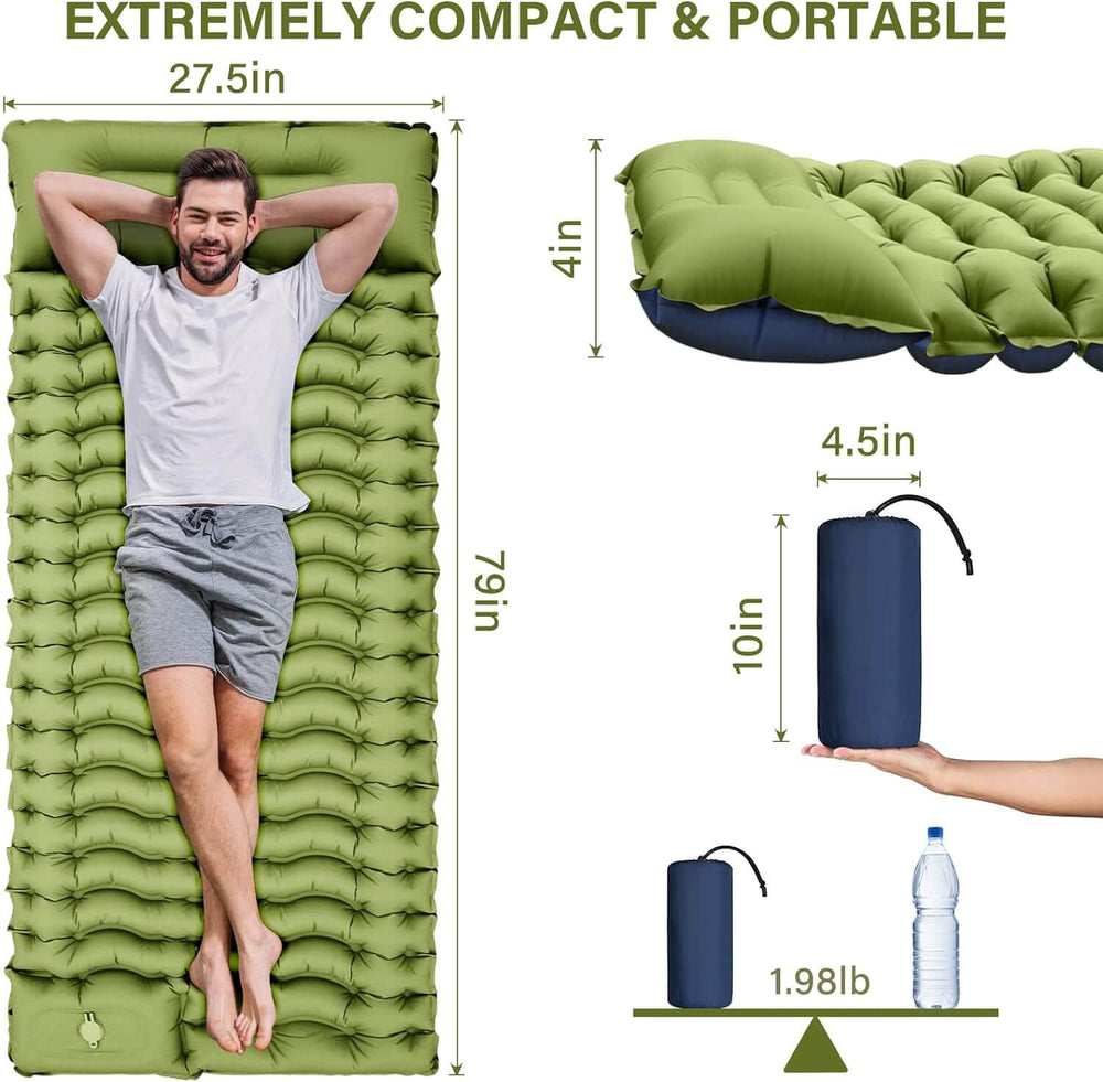Camping Inflatable Sleeping Pad with Pillow Built-in Foot Pump