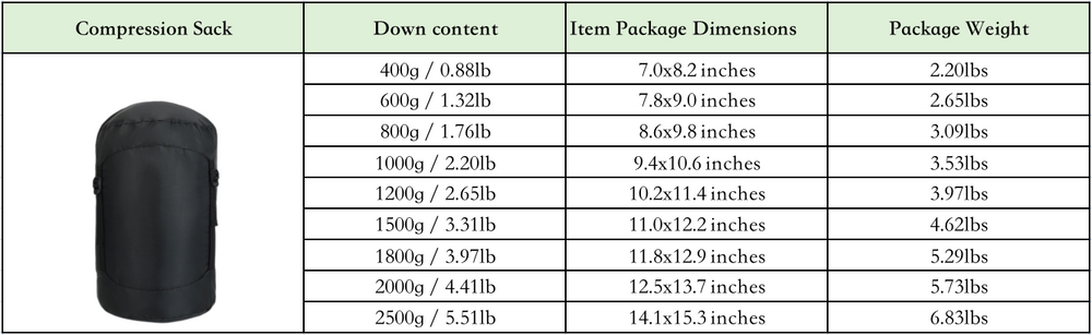 Each MISS JULIA sleeping bag includes a high-quality compression stuff sack made from durable Oxford cloth with a double-layer PU coating.