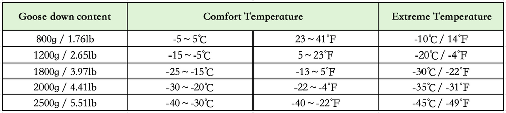 Lining Material is 400T20D - Comfortable, durable and skin-friendly. The Material is Soft, Comfortable and Breathable, Spring Back Quickly to Make Sleeping Bag more Fluffy and Warm.